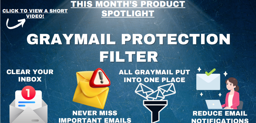 Graymail can clutter your inbox, causing important emails to get buried and making your inbox harder to manage. This is where having a Graymail Protection Filter can vastly improve your experience when checking your inbox. Our Graymail Protection Filter will collect data on all of the emails that your inbox receives and will automatically filter out all the emails that are graymail and drop them into a special graymail folder. This clears your inbox of messages that simply take up important space in your inbox and potentially lead to missing an important email due to a clogged inbox. Users who have Graymail Protection Filtering have reported improved productivity, less stress when going through their email inbox and a higher confidence that they will not miss an important email that accidently gets buried in emails we now know are considered graymail. Clear inboxes can dramatically change the way that you work. Graymail Protection Filtering allows you to have an organized inbox with the ability to still read your graymail emails at your own leisure without the risk of clogging your inbox. Ask us how to get Graymail Protection Filtering on your inbox today!
